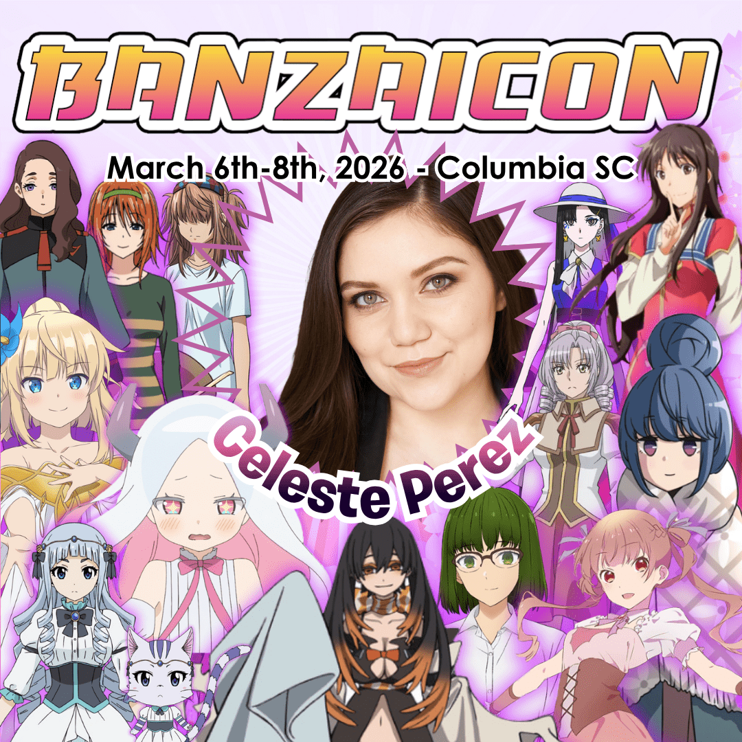 Celeste Perez is a Voice Actor based in Texas, known for her work in several anime titles such as Kaiju No. 8 (Konomi Okonogi), Laid Back Camp (Rin Shima), Horimiya (Sakura Kono), Sugar Apple Fairy Tale (Anne Halford), The Saint’s Magic Power is Omnipotent (Sei Takanashi), Dead Mount Death Play (Sayo), and Beast Tamer (Runa). You can also hear her throughout shows such as Takt Op. Destiny (Heaven), The Great Jahy Will Not Be Defeated (Su), Tsukimichi Moonlit Fantasy (Abelia Hopleys), Tenpuru (Kagura Baldwin), Why Raeliana Ended Up at the Duke’s Mansion (Freese Eriteal), Mobile Suit Gundam: The Witch From Mercury (Ireesha Plano), Handyman Saitou (Primasse), and How A Realist Hero Rebuilt the Kingdom (Sandria).