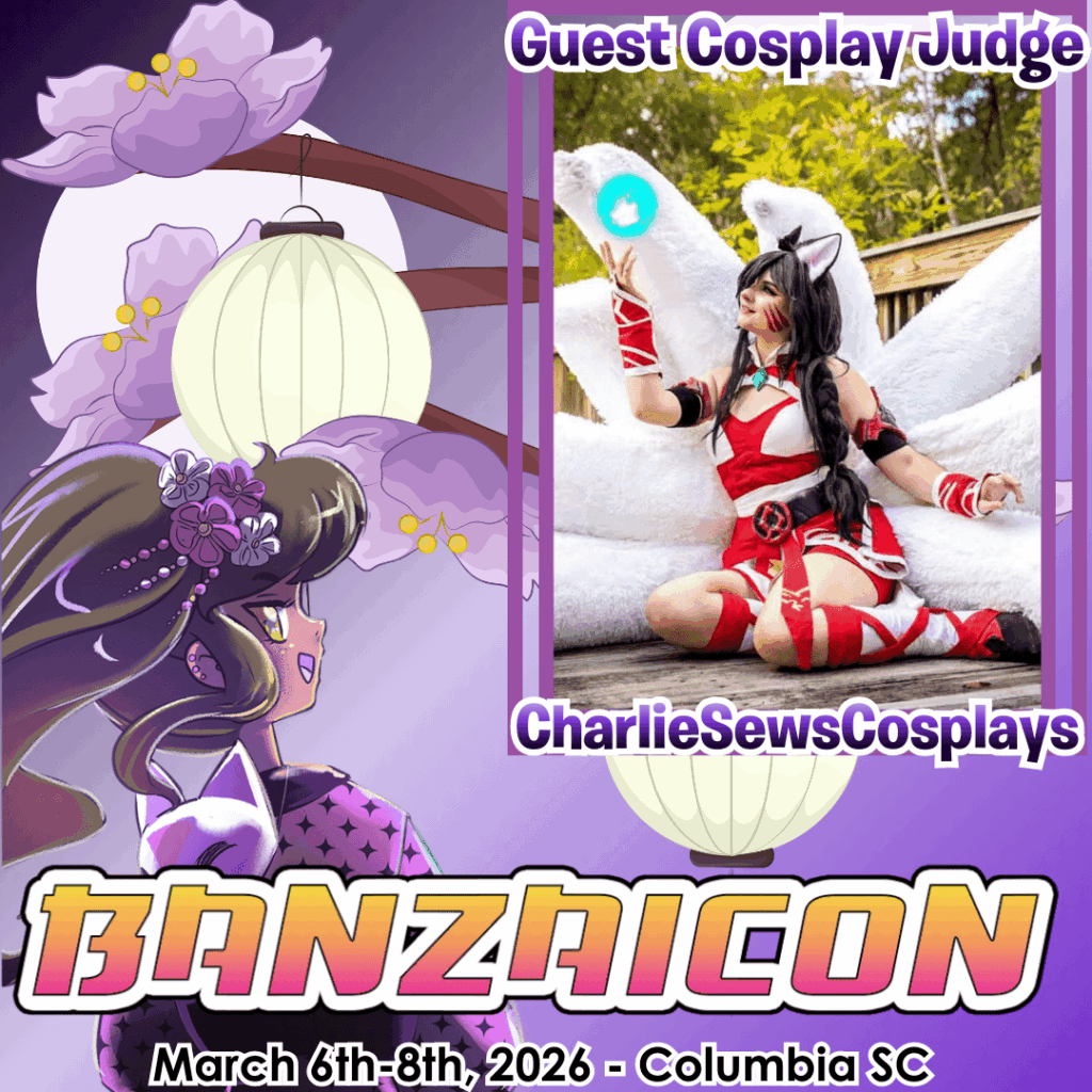 Hi everyone! I’m CharlieSewsCosplays (Charlie)! I am over the moon excited to be your cosplay craftsmanship judge! I have been sewing and crafting cosplays for over 10 years now! I specialize in sewing and have lots of experience in foam craft, wig styling, painting, patterning, crocheting/ knitting, sculpting, embroidery, and more! I also have a background in theatre where I studied costuming, historical fashion, acting, dance, and theatrical performance. My favorite part about judging and participating in cosplay contests is getting to appreciate the passion and hard work that is put into each cosplay and performance!